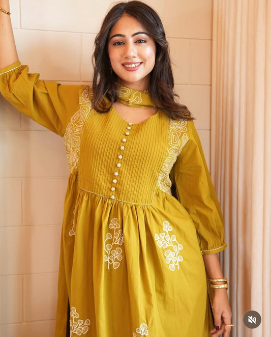 Mustard Yellow Embroidered Kurta Set with Dupatta For Woman